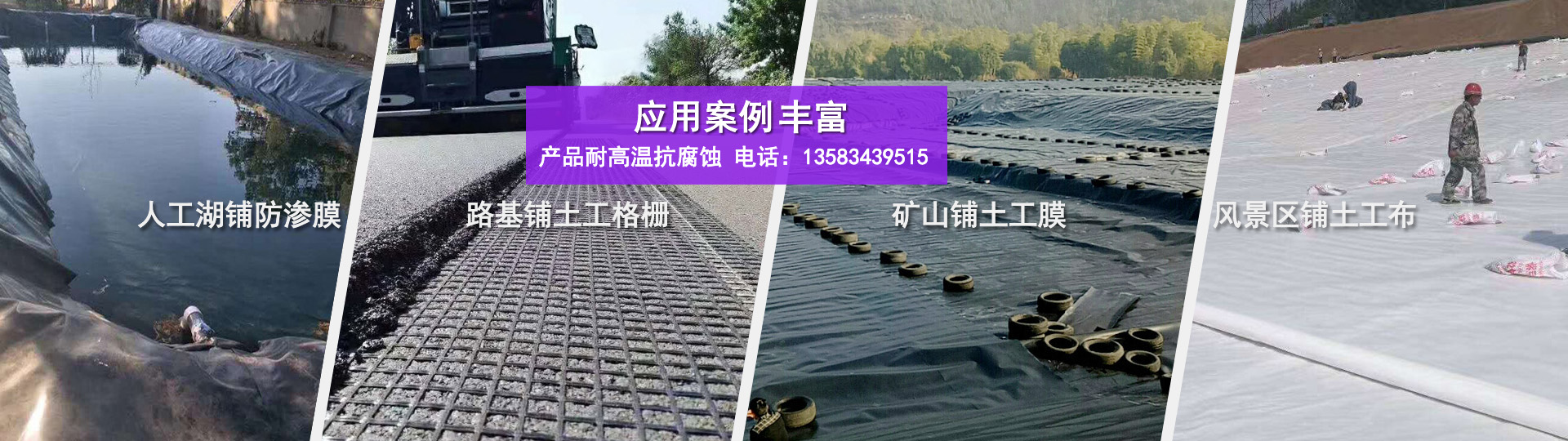 產(chǎn)品廣泛用于: 1.環(huán)保環(huán)衛(wèi)工程(如生活垃圾填埋場防滲、污水處理廠、有毒有害物質填埋場、危險品倉庫、廠房等) 2.水利土木工程(河、湖、水庫、堤壩、堵漏、加固、水渠防滲、護坡等) 3.市政工程(地鐵、建筑物的地下工程和屋頂蓄水池、屋頂花園防滲、污水管道內(nèi)襯等) 4.園林綠化(人工湖、池塘、高爾夫球場的水塘底襯、護坡等) 5.石化(化工廠、煉油廠儲油池防滲防污、化學反應池、沉淀池的內(nèi)襯、二次襯層、藥廠基建防滲與隔離) 6.礦業(yè)(洗選池、堆浸池、堆灰場、尾礦壩防滲防污等) 7.交通設施工(公路的基礎加固、涵洞的防滲) 8.農(nóng)業(yè)(水庫、飲用水池、蓄水池防滲、灌溉系統(tǒng)的防滲) 9.水產(chǎn)養(yǎng)殖業(yè)(魚塘、蝦池的內(nèi)襯等)